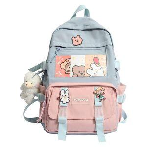 کوله پشتی ژاپنی با سنجاق خرس آویز Kawaii Backpack Cute Aesthetic Anime with Bunny Pins Bear