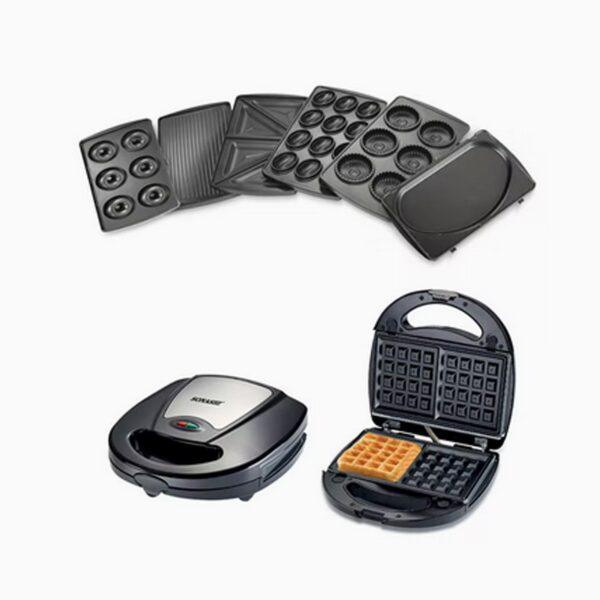 ویژگی های ایمنی:وافل ساز دارای محفظه باکلیت با پانل بالایی فولاد ضد زنگ برس خورده است که کار با دستگاه را بدون سوزاندن انگشتان آسان می کند. دسته خنک آن را می توان قفل کرد. علاوه بر این، ویژگی قطع حرارتی خودکار منبع تغذیه را برای جلوگیری از گرمای بیش از حد قطع می کند.هر بشقاب پخت و پز در ست اسنک ساز دارای روکش نچسب است. هیچ ترسی از گیر کردن خمیر یا نان به بشقاب و سوختن وجود ندارد. به لطف پوشش نچسب، محصول نهایی به راحتی خارج می شود.دارای محفظه باکلیت با تزئینات فولاد ضد زنگ برس خورده و دسته لمسی خنک از سوختن دستان شما در حین سرو یا استفاده از آن جلوگیری می کند، است.