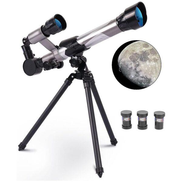 تلسکوپ Artenjoyfine small مجهز به فاصله کانونی 360 میلی متر و دیافراگم 60 میلی متر است.تلسکوپ Artenjoyfine small شامل چشمی های 20X، 30X، 40X.این تلسکوپ نجومی شکستی برای کودکان 8 تا 12 ساله و مبتدیان. این یک عملکرد آموزشی دارد و برای تحریک تمایل آنها به کشف مناظر طبیعی مفید است. این یک هدیه عالی برای علاقه مندان به نجوم است.طبق دستورالعمل نصب صحیح، نصب را می توان به راحتی کامل کرد و بهترین زاویه دید را می توان با تنظیم دستگیره به سرعت درک کرد. سه پایه فلزی بدنه تلسکوپ را پشتیبانی می کند تا در هنگام رصد پایدارتر شود.زمانی که نیازی به استفاده از آن ندارید، می توانید آن را جدا کرده و در جعبه قرار دهید، که نه تنها باعث صرفه جویی در فضا می شود، بلکه به محافظت از تجهیزات در برابر آسیب های تصادفی کمک می کند. وقتی به موقع برای مشاهده بیرون می روید برای شما مشکلی ایجاد نمی کند.نصب تتلسکوپ Artenjoyfine small ساده و استفاده آسان است و به کودکان امکان می دهد در آسمان وسیع کاوش کنند.تلسکوپ Artenjoyfine small لنز نوری پیشرفته تصویر واضحی را ارائه می دهد. بزرگنمایی های مختلف برای صحنه های مختلف مناسب است. چندین دستگیره قابل تنظیم به شما این امکان را می دهد که همیشه بهترین ها را بیابید با یک زاویه دید خوب و یک آداپتور تلفن همراه، می توانید تصاویر فوق العاده و اکتشافات جدید را در هر زمان ثبت کنید.