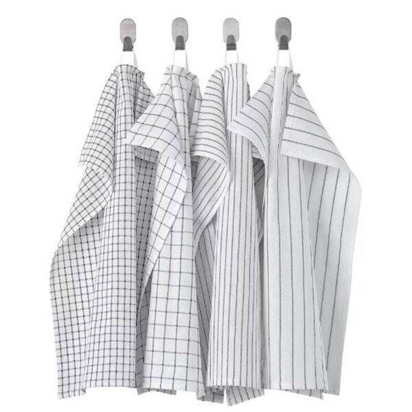 حوله پنبه ای آشپزخانه ایکیا RINNIG Tea towel, white/dark grey/patterned دارای دو طرح که این 4 حوله چای را با مربع و راه راه تزئین می کنند که از پنبه خالص بادوام ساخته شده اند. و از آنجایی که نخ ها با نخ رنگ می شوند، رنگ خود را حفظ می کنند – پس از شستشو شستشو می شوند.