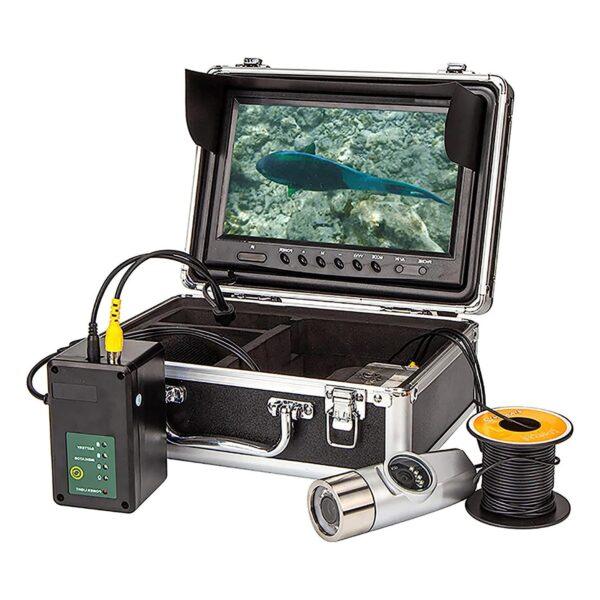 دوربین ماهیگیری زیر آب Portable Video Fish Finder, Underwater Fishing Camera دارای لنز دوتایی (دوربین دارای دو لنز است) که برای نمای بالا و سطح قابل استفاده است.با هایلایت HD با زاویه دید کامل نمایش رنگی واقعی.کابل فوق العاده استحکام: خط تشخیص فیبر شیشه ای قابل چرخش 2.25 میلی متر، قطر 2.25 میلی متر، می تواند 40 کیلوگرم نیروی کششی را تحمل کند.