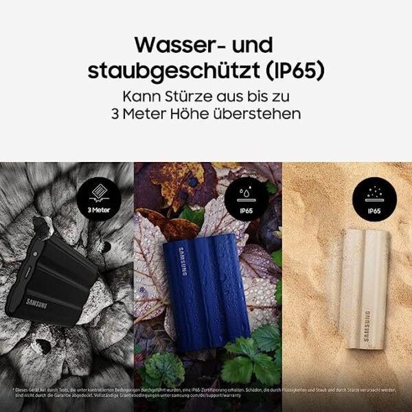 هارد اکسترنال سامسونگ مدل ‎MU-PE1T0R/EU با ظرفیت 1 ترابایت تا 9.5 برابر سریعتر از هارد اکسترنال با سرعت انتقال داده تا 1050 مگابایت بر ثانیه با دو کابل USB Type-C به C و Type-C به A به شما امکان می دهند به رایانه های شخصی، مک ها، دستگاه های اندروید، تلویزیون های هوشمند و کنسول های بازی متصل شوید.دارای فناوری داخلی PCIe NVMe سرعت خواندن و نوشتن متوالی تا 1050/1000 مگابایت بر ثانیه را فراهم می کند. داده های خصوصی شما بدون به خطر انداختن راحتی، ایمن می مانند. به لطف محفظه لاستیکی مقاوم، T7 Shield همچنین می تواند در برابر سقوط از ارتفاع تا 3 متر مقاومت کند.