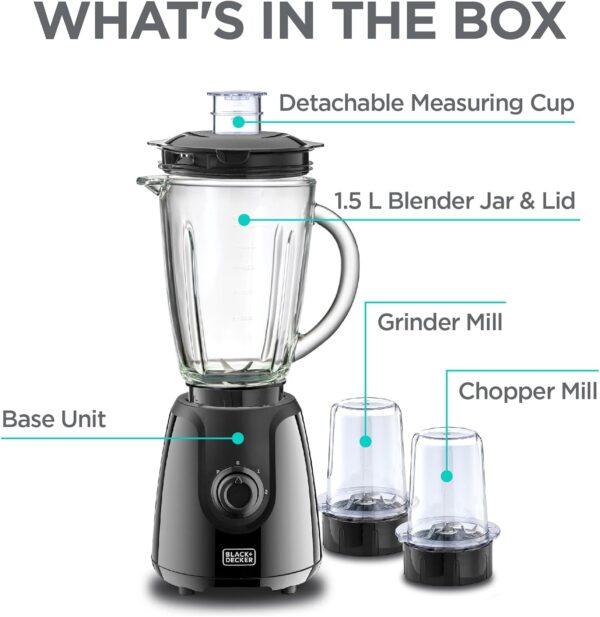 ظرفیت 1.5 لیتری مخلوط کن Black & Decker مدل BX440-B5، امکان تهیه مقدار زیادی مواد غذایی را برای شما فراهم می کند. این ظرفیت برای تهیه اسموتی، سوپ، سالاد و سایر غذاها و نوشیدنیها مناسب است.