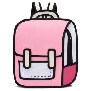 کوله پشتی کارتونی مدرسه دوبعدی رنگ قرمز Aobiono Kawaii Backpack Cute Cartoon 3D Jump Style 2D Drawing